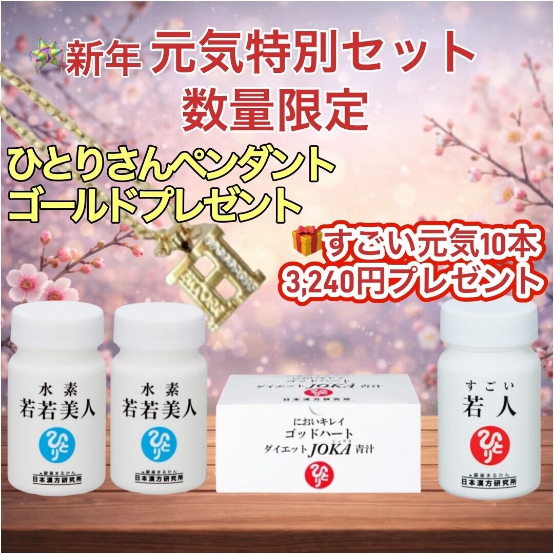 【感謝祭】元気特別セット 元気の素10本プレゼント付き 55,080円(税込み) ひとりさんゴールドペンダントプレゼント 水素若若美人2個 ゴッドハートダイエットJOKA青汁 すごい若人 限定数量